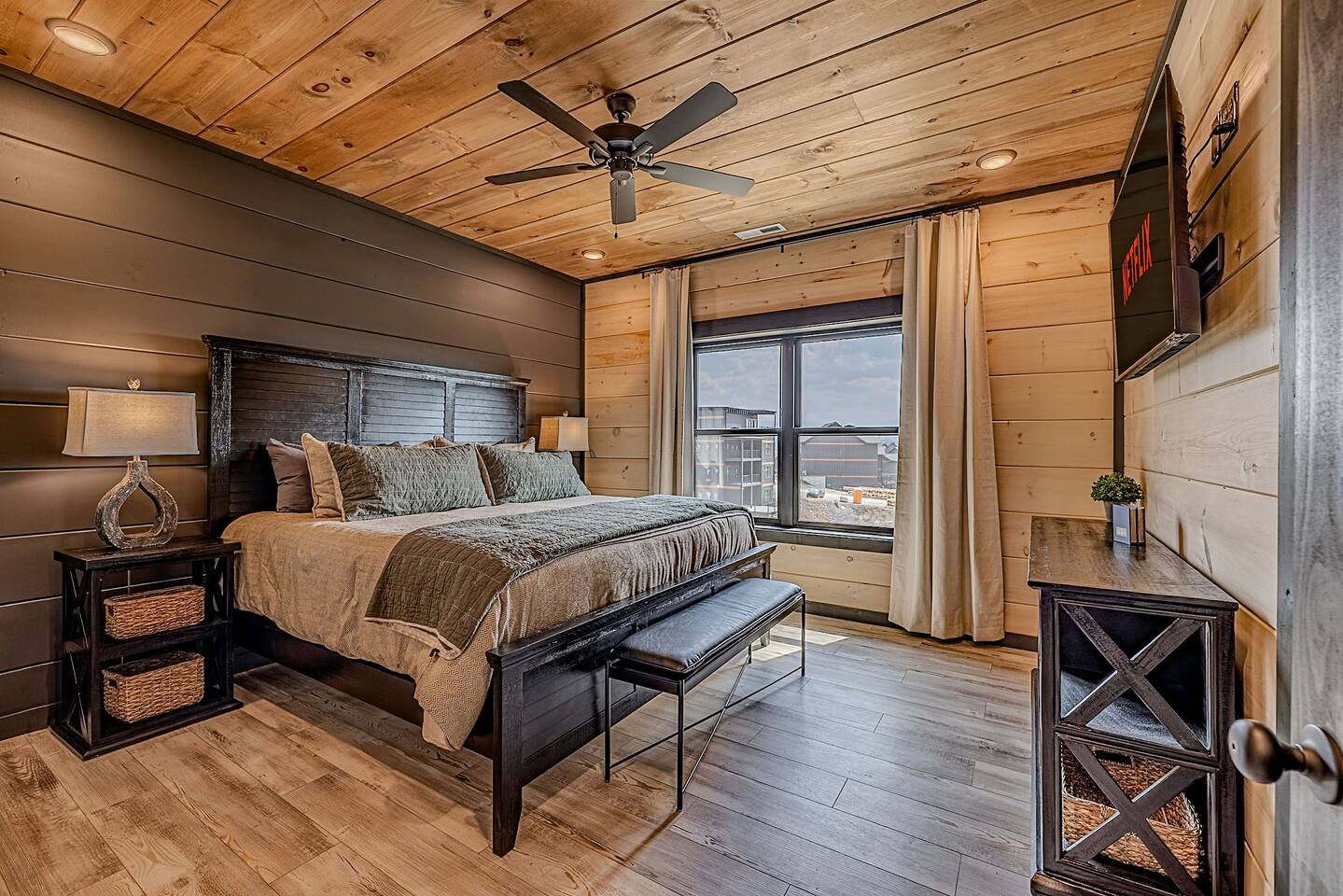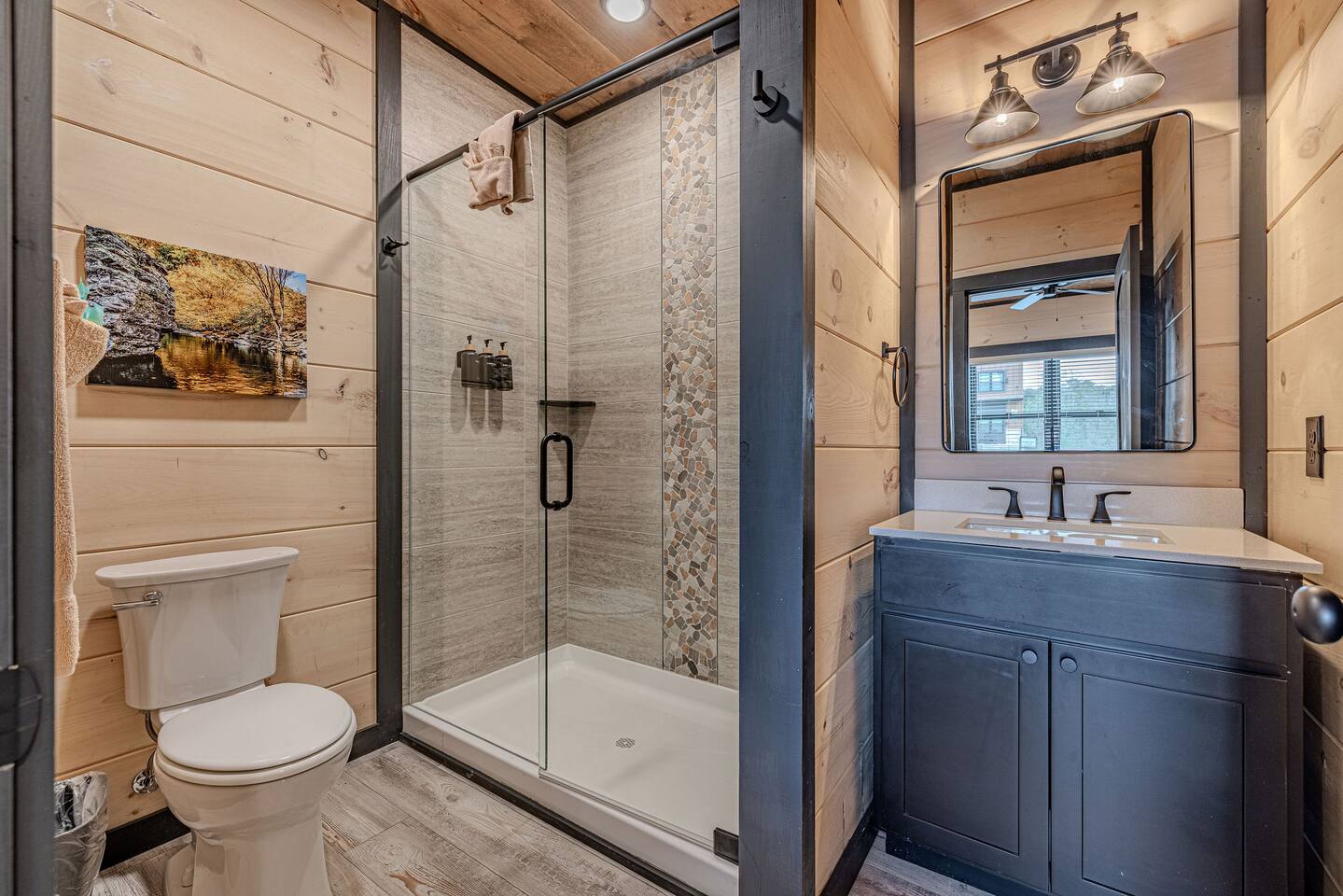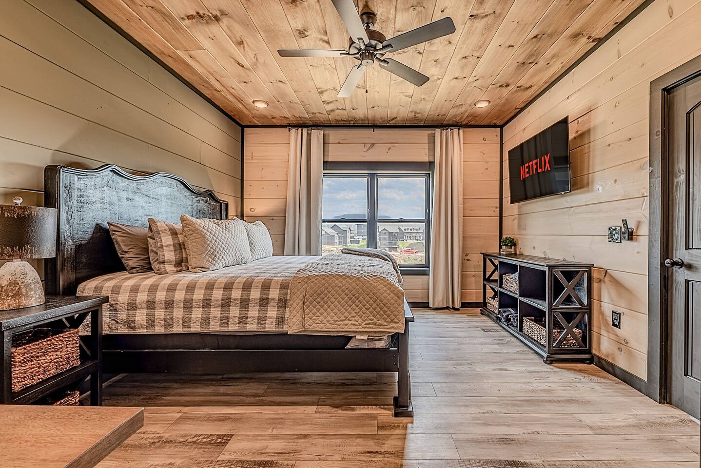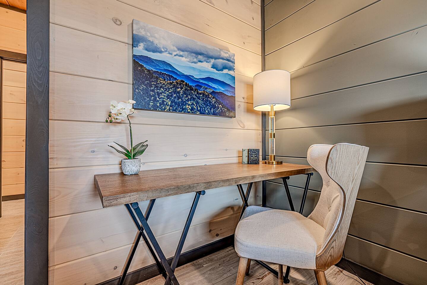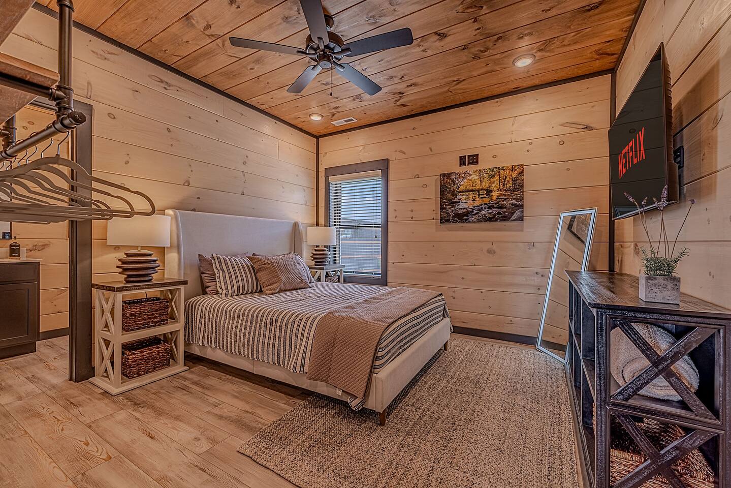 Cabin Details: Sleeps up to 21 guests Designed for Comfort & Privacy • 6 spacious bedrooms — 5 King bedrooms and 1 Queen • Plus Queen-over-king bunk in one of the king bedrooms • Third-floor living area with 2 oversized sets of built-in bunk beds (4 single beds total) • Private en-suite bathroom in every bedroom • Additional full bath with tub No waiting for showers. No one stuck with the “bad room.” Every guest gets their own comfortable retreat. Made for Gathering The large, fully stocked kitchen is perfect for feeding a crowd, featuring: • Expansive prep space • Two dining tables for large group meals • Open-concept layout ideal for entertaining From big holiday dinners to casual pancake breakfasts, there’s room for everyone. Entertainment on Every Level This cabin was built for fun: • Private Indoor Pool — swim year-round, rain or shine • Private Theater Room — movie nights just got better • Arcade games including Golden Tee plus game sticks on all four bunk bed tvs • Pool Table • Hot tub with mountain views • (2) Large sectional and firepit on one of three decks Whether it’s kids swimming for hours, teens battling it out in the arcade, or adults relaxing under the stars — everyone stays entertained. Waterpark Access Included Located inside the premier Smith Creek Resort community, guests enjoy access to the on-property waterpark — adding even more fun without ever leaving the neighborhood. It’s like having a mini resort vacation built into your stay. Three Levels of Mountain Views Step onto any of the three spacious decks to take in sweeping Smoky Mountain scenery. Morning coffee hits different when the mountains are glowing in front of you. Prime Location • Just 1 mile off the main Parkway in Pigeon Forge • 5 miles to Dollywood • 10 miles to Gatlinburg • 15 miles to Great Smoky Mountains National Park • Minutes from hiking, attractions, dining, activities (Zip lines), and shopping Close to everything — yet tucked away enough to feel peaceful and private. This is the kind of place where: • Kids never get bored • Parents actually relax • Grandparents feel comfortable • And everyone wants to rebook before checkout Accessories Included • EV Charger • Grill • Propane Firepit