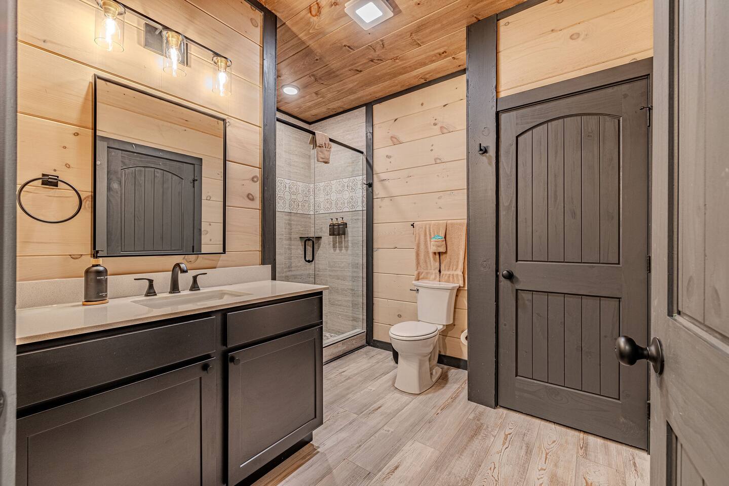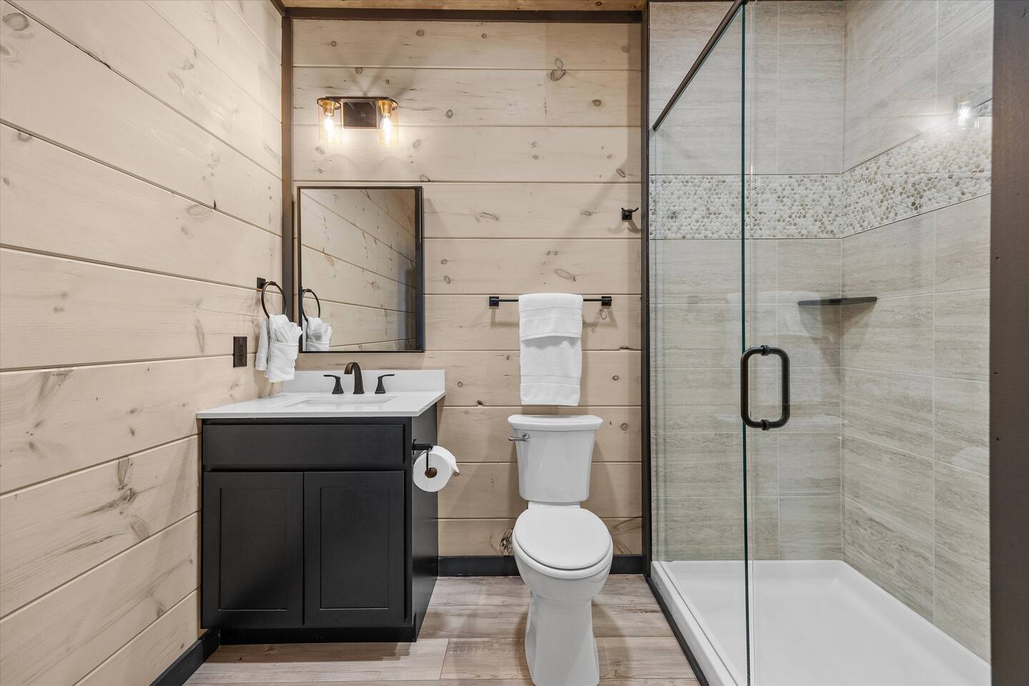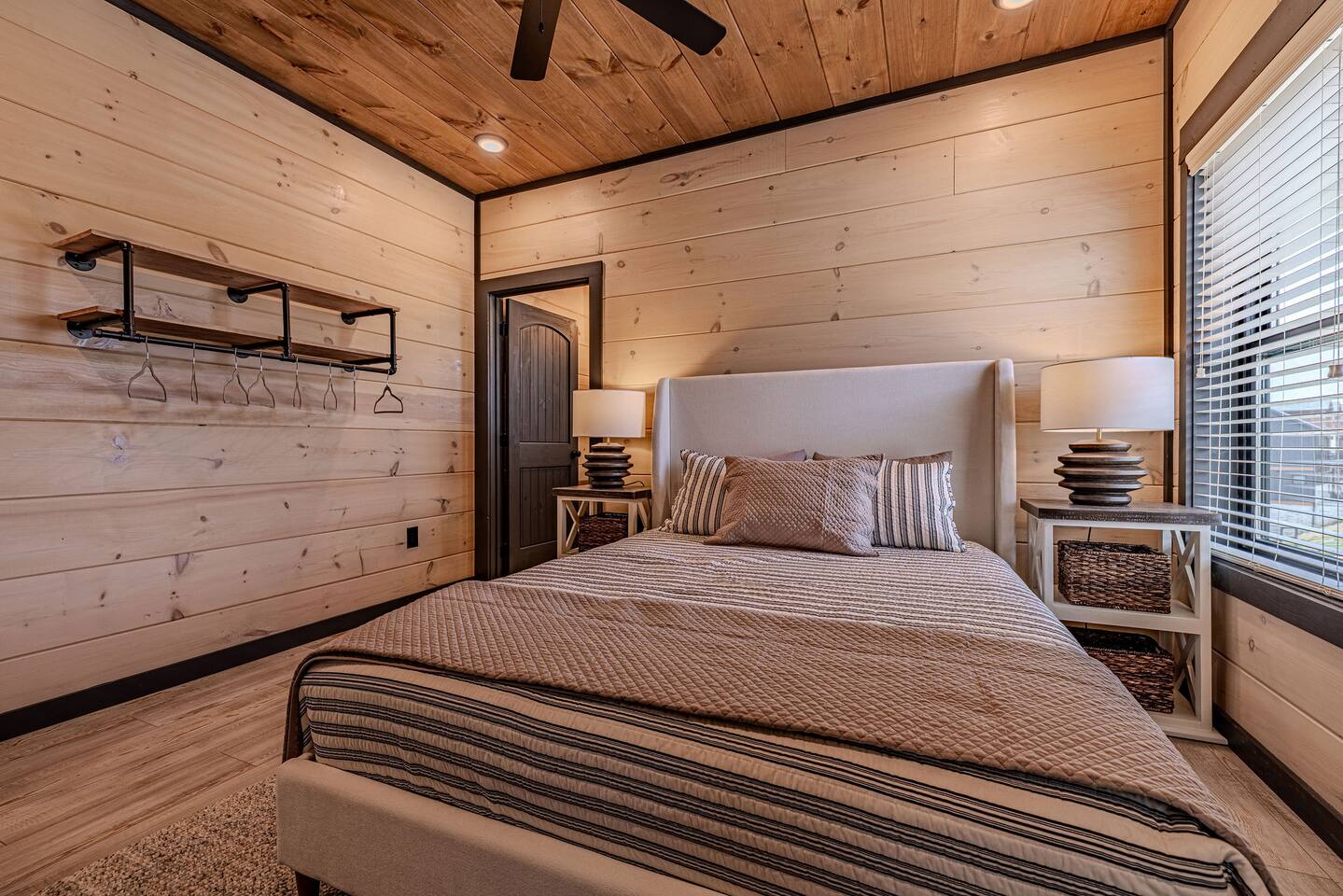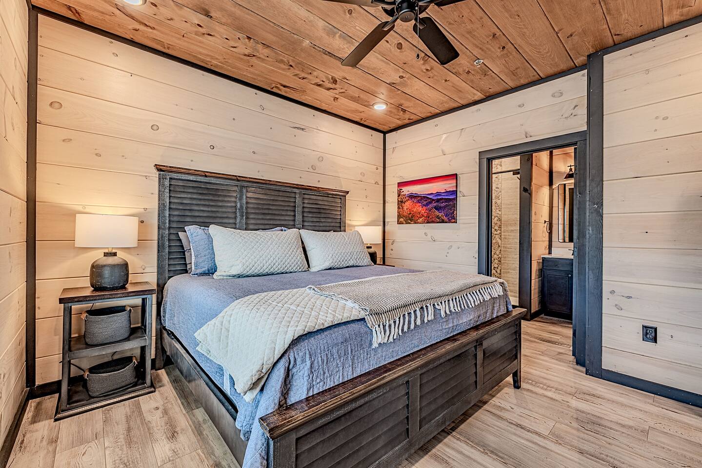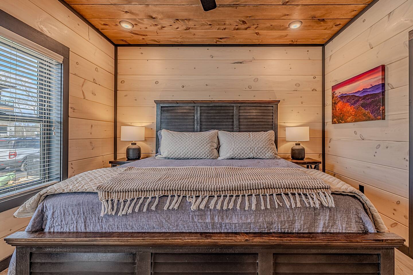 Cabin Details: Sleeps up to 21 guests Designed for Comfort & Privacy • 6 spacious bedrooms — 5 King bedrooms and 1 Queen • Plus Queen-over-king bunk in one of the king bedrooms • Third-floor living area with 2 oversized sets of built-in bunk beds (4 single beds total) • Private en-suite bathroom in every bedroom • Additional full bath with tub No waiting for showers. No one stuck with the “bad room.” Every guest gets their own comfortable retreat. Made for Gathering The large, fully stocked kitchen is perfect for feeding a crowd, featuring: • Expansive prep space • Two dining tables for large group meals • Open-concept layout ideal for entertaining From big holiday dinners to casual pancake breakfasts, there’s room for everyone. Entertainment on Every Level This cabin was built for fun: • Private Indoor Pool — swim year-round, rain or shine • Private Theater Room — movie nights just got better • Arcade games including Golden Tee plus game sticks on all four bunk bed tvs • Pool Table • Hot tub with mountain views • (2) Large sectional and firepit on one of three decks Whether it’s kids swimming for hours, teens battling it out in the arcade, or adults relaxing under the stars — everyone stays entertained. Waterpark Access Included Located inside the premier Smith Creek Resort community, guests enjoy access to the on-property waterpark — adding even more fun without ever leaving the neighborhood. It’s like having a mini resort vacation built into your stay. Three Levels of Mountain Views Step onto any of the three spacious decks to take in sweeping Smoky Mountain scenery. Morning coffee hits different when the mountains are glowing in front of you. Prime Location • Just 1 mile off the main Parkway in Pigeon Forge • 5 miles to Dollywood • 10 miles to Gatlinburg • 15 miles to Great Smoky Mountains National Park • Minutes from hiking, attractions, dining, activities (Zip lines), and shopping Close to everything — yet tucked away enough to feel peaceful and private. This is the kind of place where: • Kids never get bored • Parents actually relax • Grandparents feel comfortable • And everyone wants to rebook before checkout Accessories Included • EV Charger • Grill • Propane Firepit