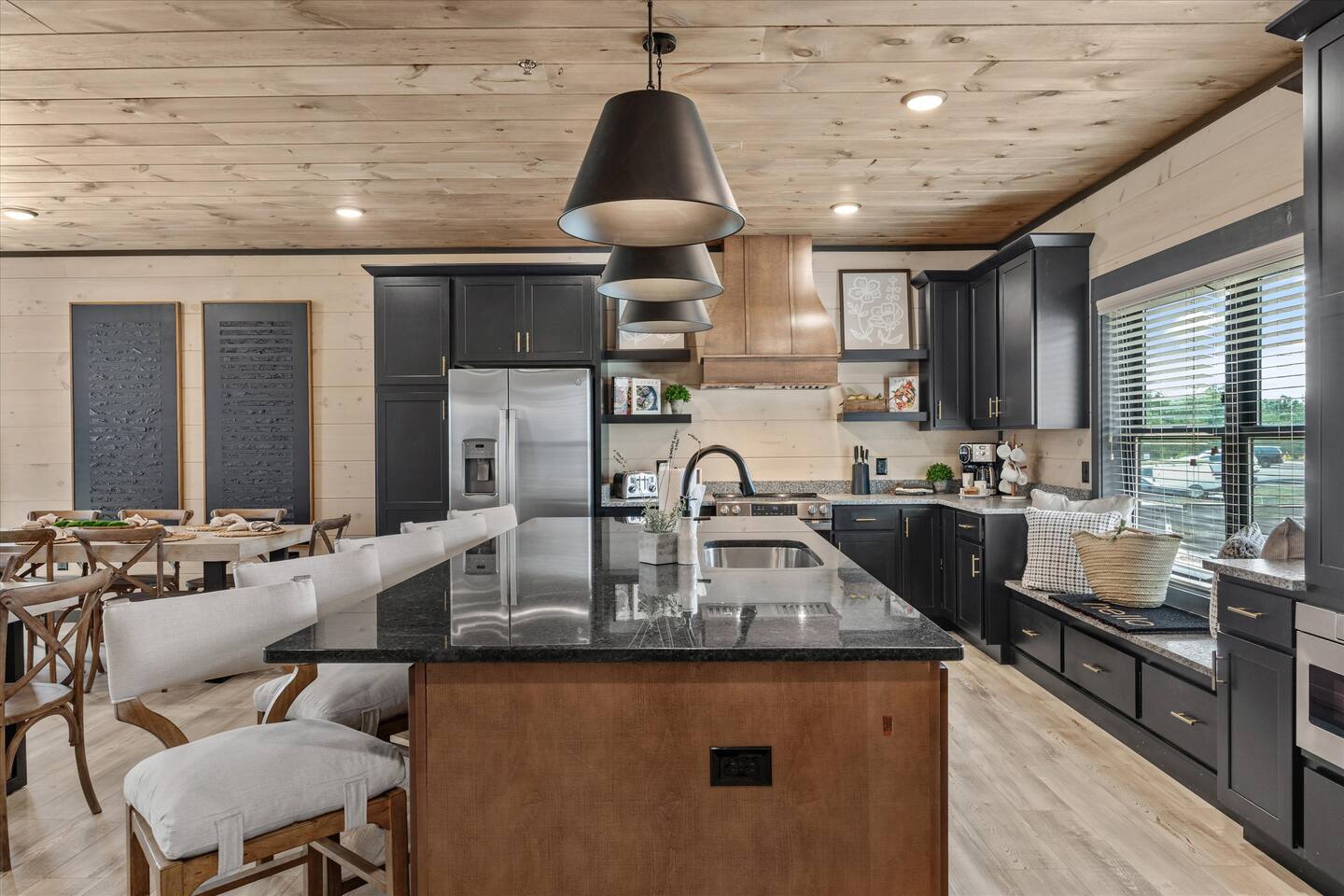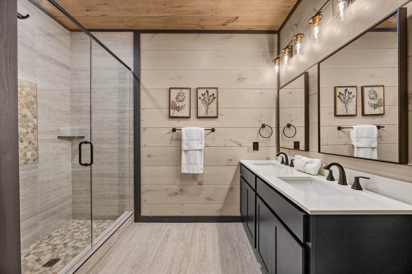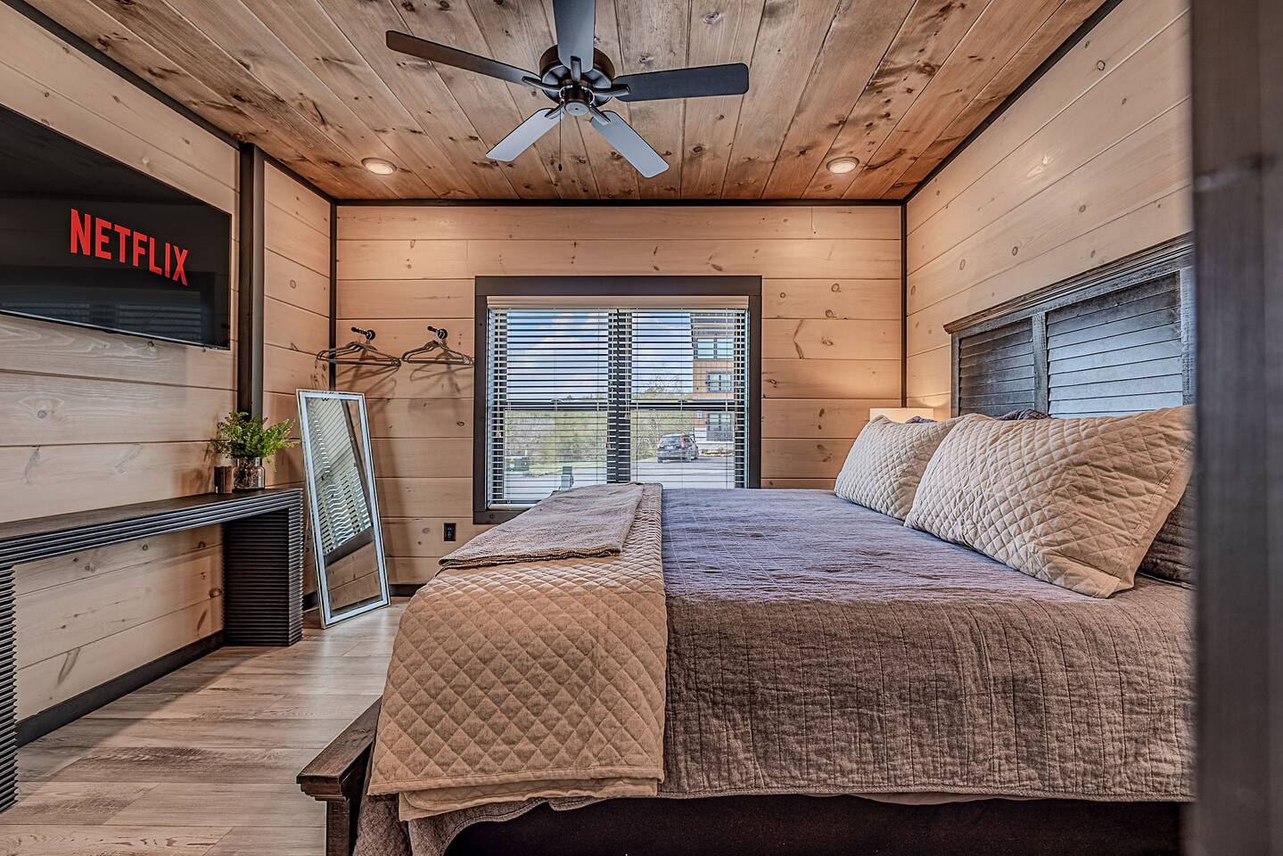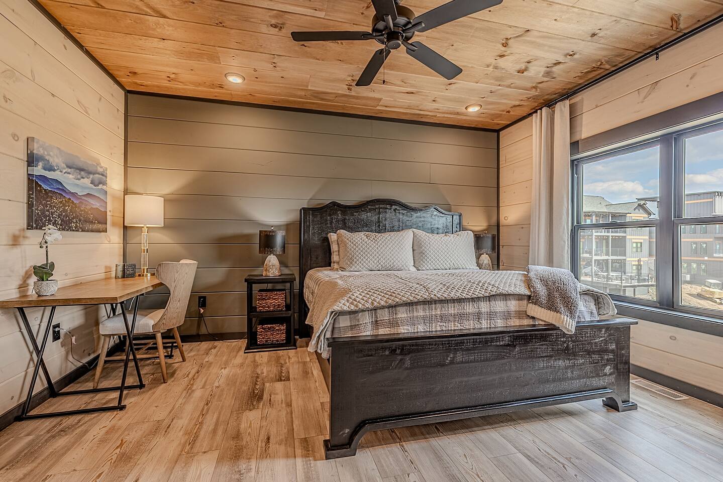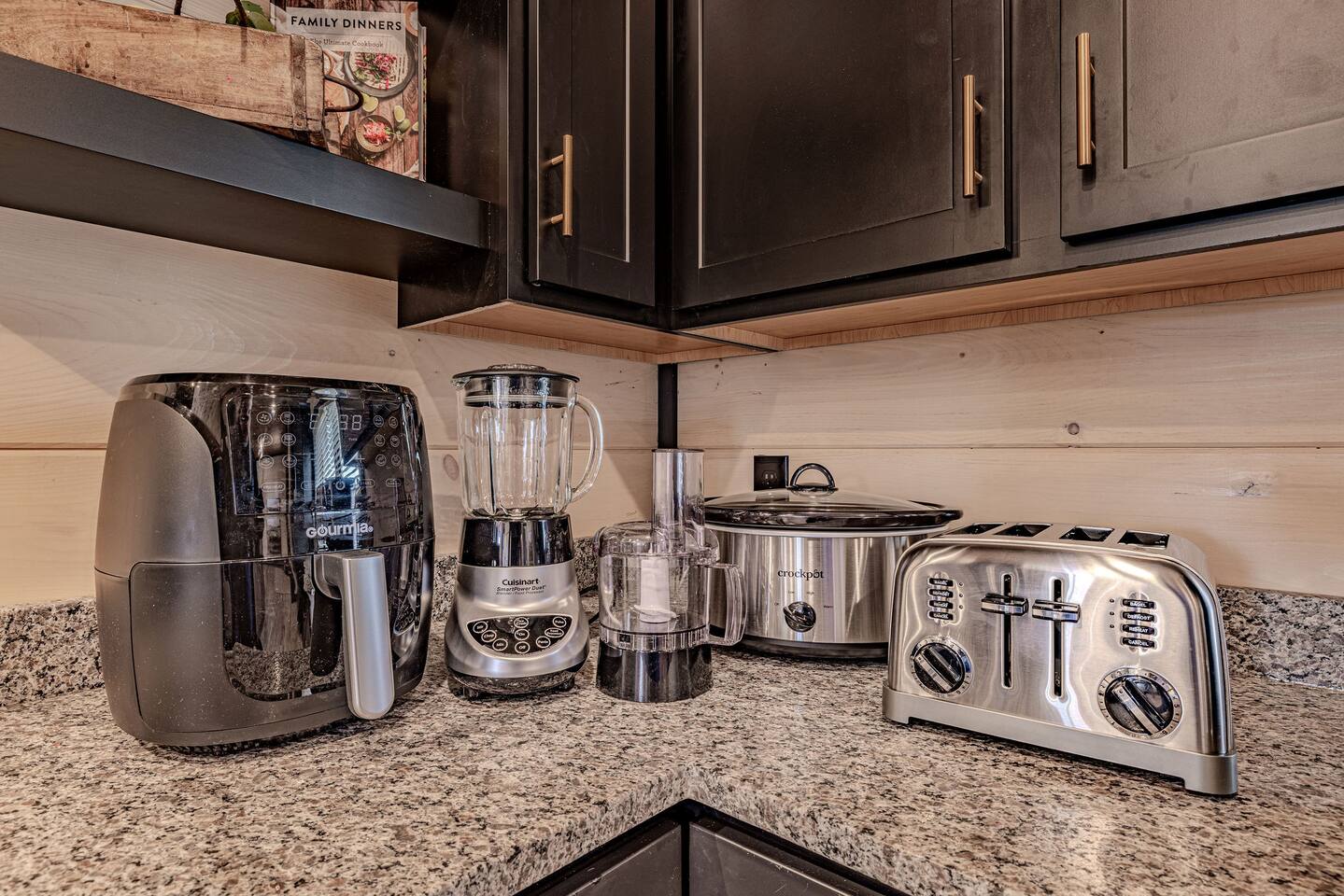Cabin Details: Sleeps up to 21 guests Designed for Comfort & Privacy • 6 spacious bedrooms — 5 King bedrooms and 1 Queen • Plus Queen-over-king bunk in one of the king bedrooms • Third-floor living area with 2 oversized sets of built-in bunk beds (4 single beds total) • Private en-suite bathroom in every bedroom • Additional full bath with tub No waiting for showers. No one stuck with the “bad room.” Every guest gets their own comfortable retreat. Made for Gathering The large, fully stocked kitchen is perfect for feeding a crowd, featuring: • Expansive prep space • Two dining tables for large group meals • Open-concept layout ideal for entertaining From big holiday dinners to casual pancake breakfasts, there’s room for everyone. Entertainment on Every Level This cabin was built for fun: • Private Indoor Pool — swim year-round, rain or shine • Private Theater Room — movie nights just got better • Arcade games including Golden Tee plus game sticks on all four bunk bed tvs • Pool Table • Hot tub with mountain views • (2) Large sectional and firepit on one of three decks Whether it’s kids swimming for hours, teens battling it out in the arcade, or adults relaxing under the stars — everyone stays entertained. Waterpark Access Included Located inside the premier Smith Creek Resort community, guests enjoy access to the on-property waterpark — adding even more fun without ever leaving the neighborhood. It’s like having a mini resort vacation built into your stay. Three Levels of Mountain Views Step onto any of the three spacious decks to take in sweeping Smoky Mountain scenery. Morning coffee hits different when the mountains are glowing in front of you. Prime Location • Just 1 mile off the main Parkway in Pigeon Forge • 5 miles to Dollywood • 10 miles to Gatlinburg • 15 miles to Great Smoky Mountains National Park • Minutes from hiking, attractions, dining, activities (Zip lines), and shopping Close to everything — yet tucked away enough to feel peaceful and private. This is the kind of place where: • Kids never get bored • Parents actually relax • Grandparents feel comfortable • And everyone wants to rebook before checkout Accessories Included • EV Charger • Grill • Propane Firepit